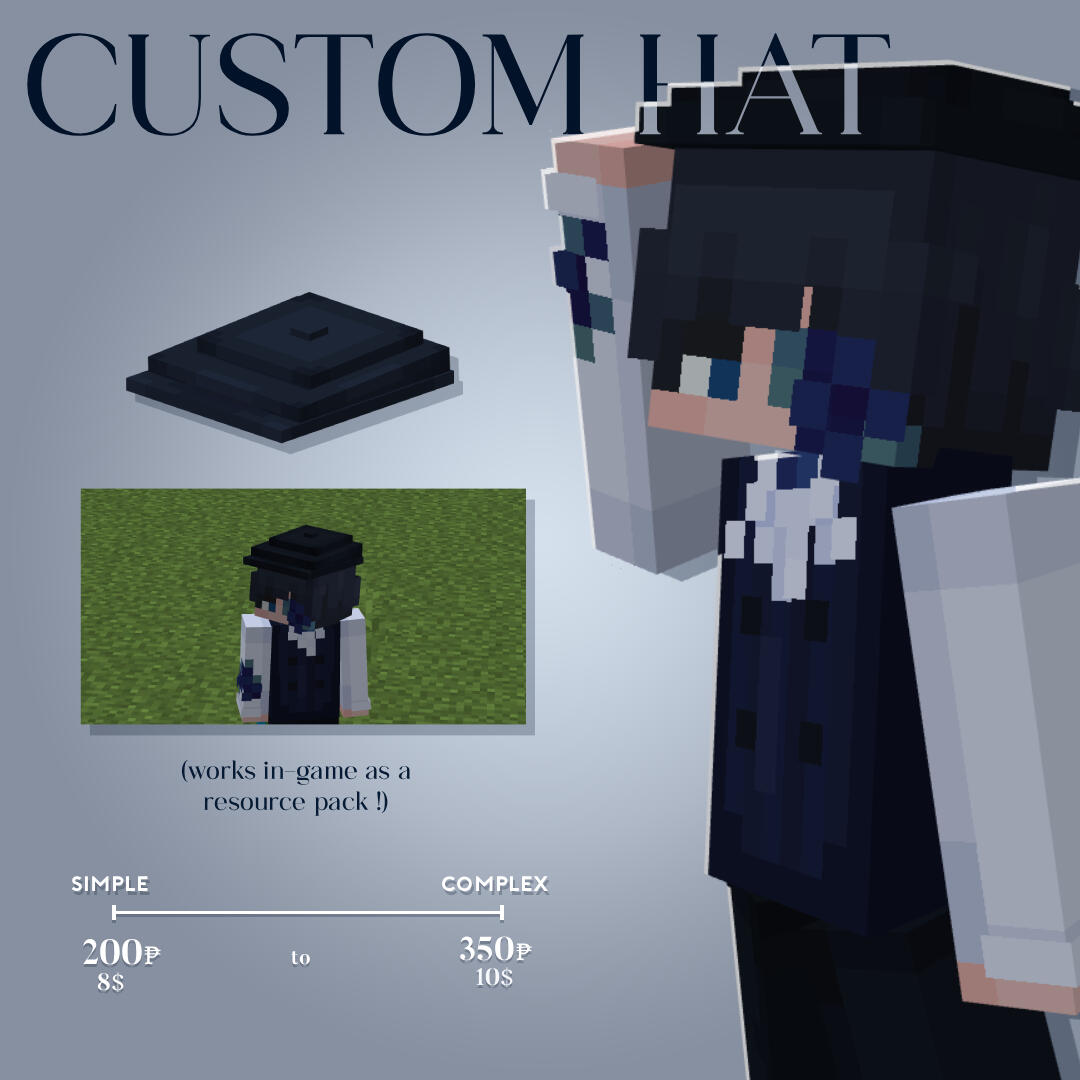 • I retain all copyrights and the right to display the skins and custom hats in my portfolio and social media unless requested otherwise.